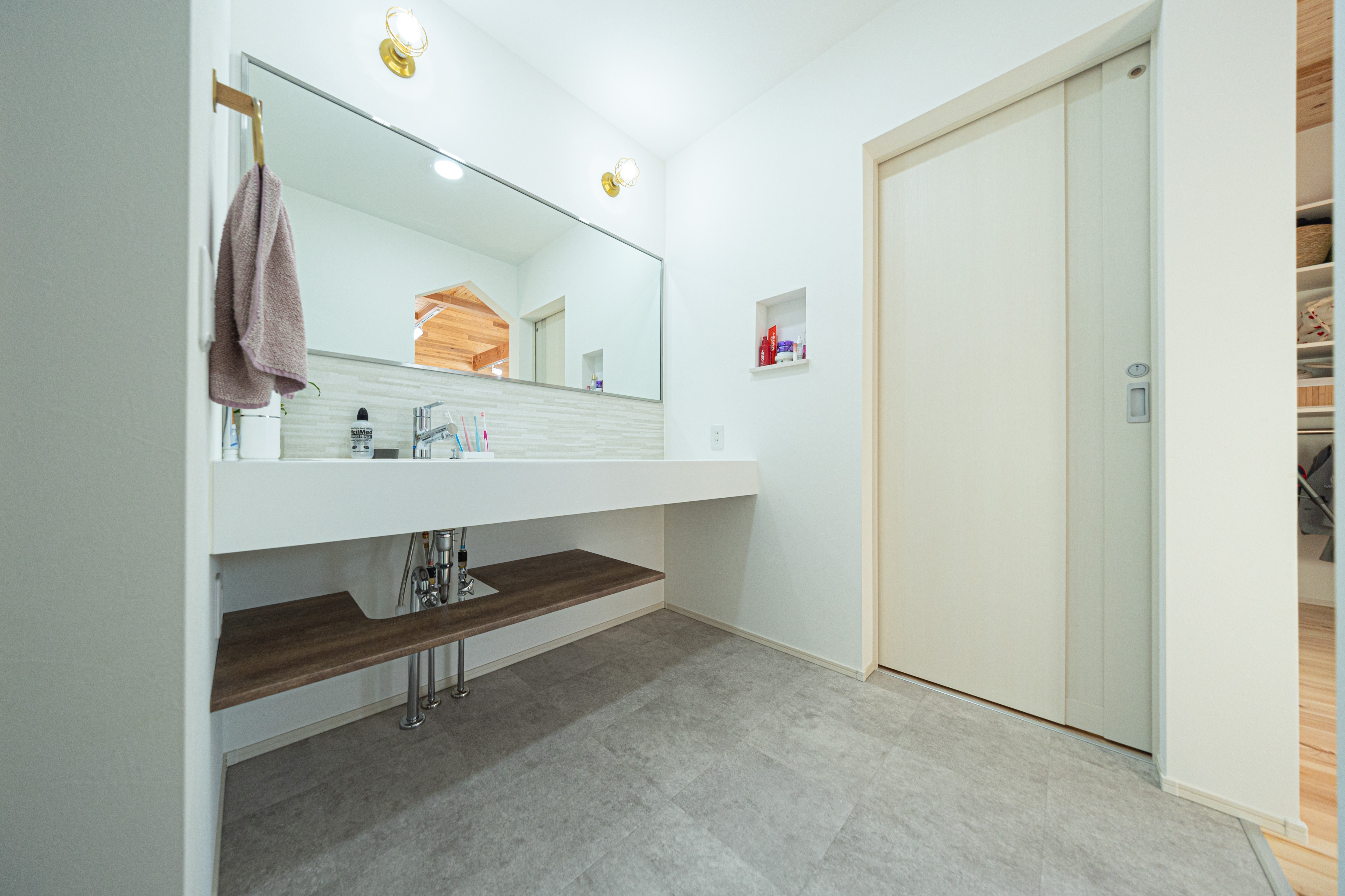 家族並んで使える洗面台。朝の混雑も解消しました。