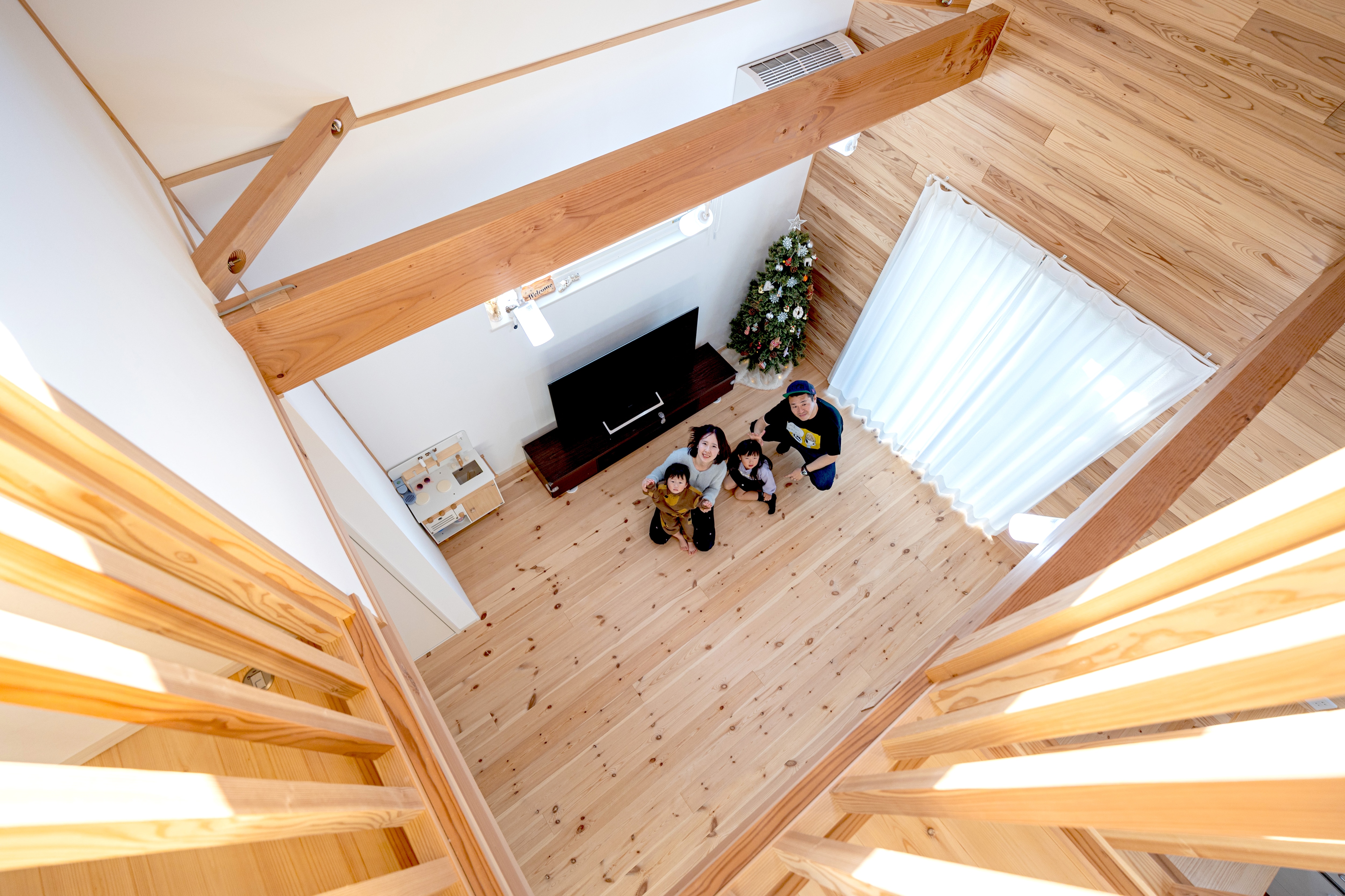 つながりある木の空間が気持ちいい! 吹き抜けリビングに家族の笑顔が集まる家