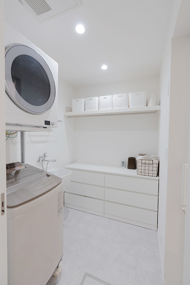 たくさんの洗濯物でもストレスなし!楽な動線のランドリースペース。