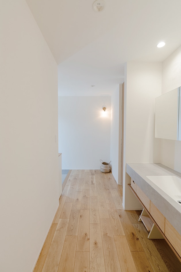 玄関を入ってすぐのところに洗面台を設置。手洗い習慣が自然と身につきます。